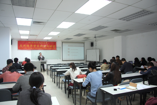 本次应用经济学前沿讲堂公司邀请到来自宏源证券北京资产管理分公司董事总经理岳瑞科老师为公司员工作题为《中国资产管理行业现状及发展》的报告。公司指导主任牟晖老师担任主持,2014级研究生和博士出席了本次讲座。讲座一开始,牟晖老师对岳瑞科教授作了简要介绍,岳瑞科老师对我国资产管理行业的发展有很深入的研究。