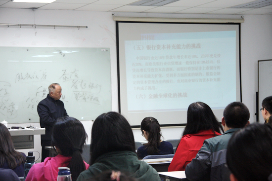 2014年10月13日,公司邀请到来自中国银河证券有限责任公司高级经济学家苑德军教授为公司员工作题为《中国金融业发展趋势与商业银行面对的挑战》的报告。公司李平教授担任主持,2014级研究生出席了本次讲座。讲座一开始,李教授对苑德军教授作了简要介绍——苑教授的研究方向主要为金融理论与政策、投资经济和项目分析,与此同时他也担任了中国社科院金融研究中心特邀研究员和中国农业大学金融与投资研究中心特邀研究员等。