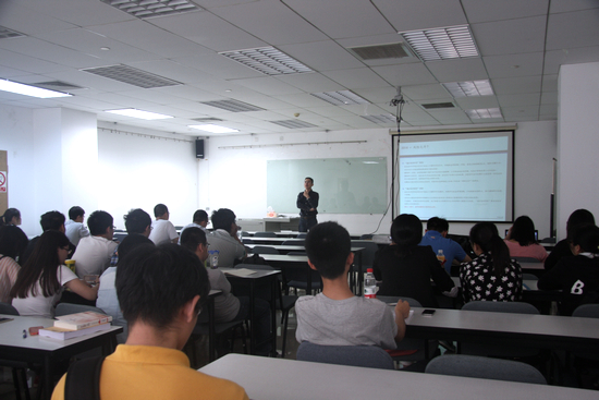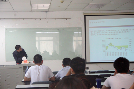 讲座由赵尚梅教授主持,为同学们简要介绍了刘先生的基本情况。刘继海博士是中航证券固定收益部总经理,同时也是人事部总经理,刘继海博士的从业经历丰富,他用生动的语言给我们介绍了券商的固定收益部的情况,给我们留下了深刻的印象。