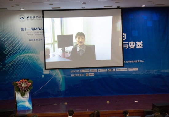 北航经管公司经理王惠文教授为MBA年会致贺视频随后播放,视频中王经理向我们阐述了当今时代大趋势,是一个充满创新机遇的年代,也是一个可以建功立业、大有作为的年代!她强调对于大学教育来说,老师们在考虑如何使教学内容与教育模式能紧跟时代的潮流方向的同时更需要思考:新一代的员工们是一种什么样的思维和学习模式?有什么样的精神主张?怎样才能在大学教育中建立线上线下交互式链接的社会网络?怎样才能推动分享互助式的自组织学习?而什么才是教育机构最有效的社会传感器?这些需要公司在教育改革中解放思想,大胆创新!她认为北航MBA的同学们是一个非常优秀和积极向上的员工群体,希望在今天MBA年会上,认真倾听嘉宾和老师们,有所收益,最后预祝年会圆满成功。