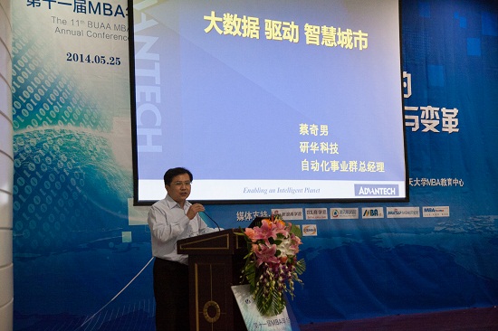 研华工业自动化事业群中国区总经理蔡奇男先生以“大数据驱动智慧城市”为本届年会率先开讲。他首先阐述了在当今时代,大数据已经无处不在地应用于人们日常生活中,加之科技的进步,大数据在未来世界里更是无所不能,也更能整合加速物联网的发展。其次,强调大数据驱动下的智慧城市关乎每个人生命,我们应如何牢抓大数据命脉,使得日常生活乃至政府管理更具“智慧”。最后,期待各位MBA同学可以深入研究大数据!