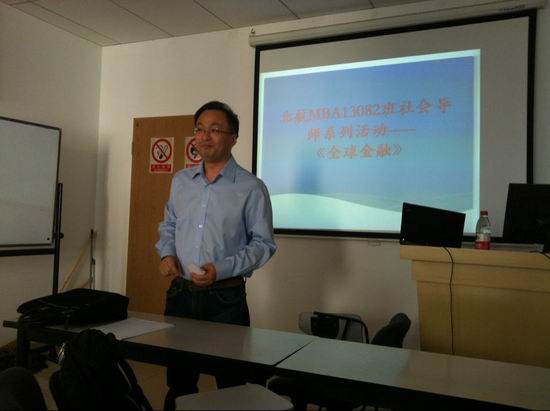 2014年4月26日下午,北航MBA2013级2班的同学请来了社会导师陈文先生为我班同学授课,课堂设置在新主楼A1036。特意将课堂安排到小教室,是因为我班前段时间在陈文老师企业参访的时候,陈老师曾经提出,希望能进行小班授课,既人数控制在20人以内。本次讲课议题以创业为主线,结合全球金融进行多视角分析。于是,针对同学的实际需求,结合各自职业发展的现实情况,在班长及班委会的精心安排下,15名本班及外班同学报名参加了此次活动。