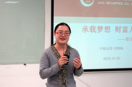 12月13日晚,经管公司职业发展中心主办、经英荟举办的证券行业发展及企业用人标准讲座在新主楼A1048举行,中航证券有限公司人力资源总经理刘继海先生给大家做了题为“承载梦想,财富人生”的讲座。讲座由职业发展中心主任牟晖老师主持。
