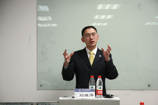 首先,刘继海先生介绍了金融行业的现状、人才需求的类型,指出专业复合型人才是目前最缺乏的,而真正的高端人才在任何时候都是最需要的,鼓励同学们要努力提升自己,使自己变得优秀。