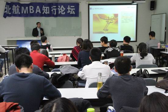 2013年12月7日晚,北航MBA知行论坛创新讲座在新主楼A1128举行,曾任中国长城资产管理公司新闻发言人,国际融资公司董事长,天津股权投资协会副会长,现任中国长城资产管理公司战略发展部副经理的文显堂先生给大家做了题为《金融创新的新趋势》的讲座。北航MBA教育中心秦中峰副主任、社会导师顾常超博士共同出席,并主持论坛。