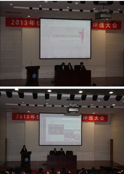 SY12081班在第9号答辩,答辩小组由班长卢清带领,该小组的答辩精彩纷呈,在短短的三分钟内将班级的概况、ihome的建设、承办的各项讲座与活动以及班级的建设特色一一展现在大家面前,精彩的表现和班级所取得的诸多成绩赢得了评委和观众的一致好评。ZY12081班第18个展示,该答辩小组由班长林永慧带领,整个答辩有条不紊、声情并茂,展示的内容生动简洁,围绕中国梦等系列活动讲述了ZY12081这个充满青春活力的班级一年多来的建设成果,赢得了评委和观众一阵阵肯定的掌声。