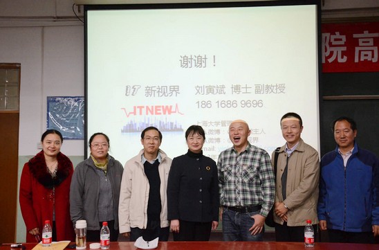 2013年11月14日晚,经管公司高端论坛在主楼203教室成功举办。本次论坛邀请了上海大学副教授、新浪微博传播顾问刘寅斌老师做题为《社会化媒体背景下的媒体整合营销》的报告。经管公司经理王惠文教授、党委副书记高翔老师、研究生指导主任牟晖老师、信息系统与信息管理系李红老师、姚忠老师、吴俊杰老师出席了本次论坛,经管公司本科生、研究生积极参加到本次论坛中来。