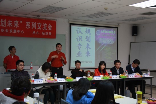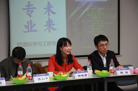 11月1日晚上19:00,由职业发展中心和北航经管分研会主办、经英荟及SY13081班承办的“认识专业,规划未来”系列讲座--管科与工程与国际贸易专场在新主楼A座928顺利举行。本场邀请到的嘉宾有:管理科学与工程系教授,博士生导师张人千老师;员工:盛名、张驰、魏增、陆晓燕、仲艳雪、石子玉;参加讲座的还有SY13081班的全体同学。老师与学长学姐们就学习、科研、实习、求职和工作等一系列问题进行了交流与探讨。