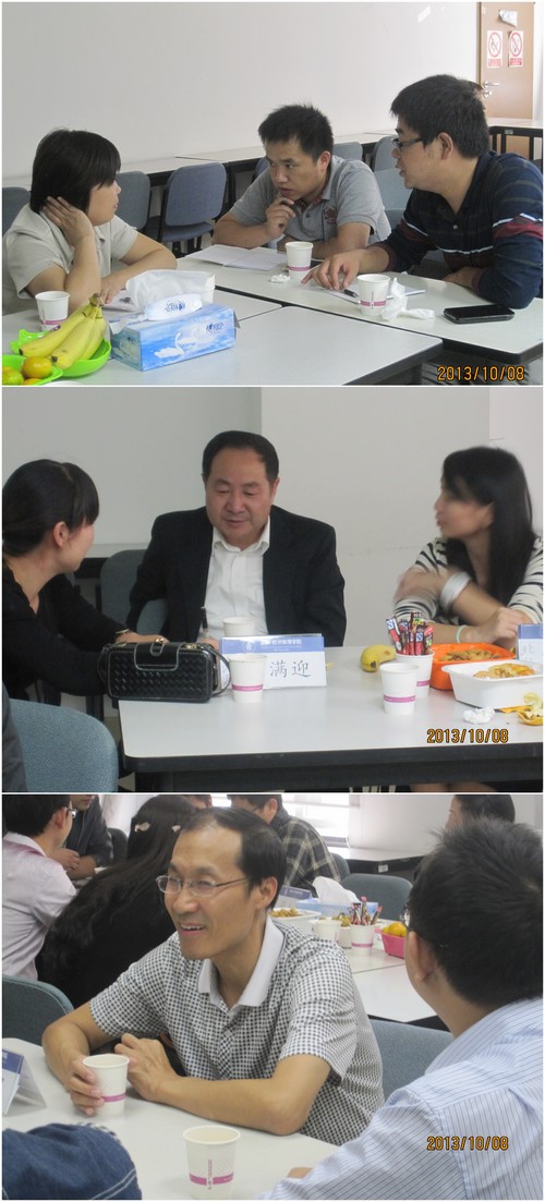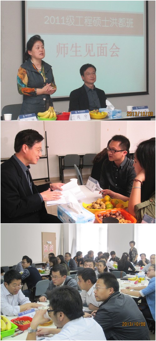 十一长假过后的第一天,北航经管公司迎来了中航工业洪都班30名同学进校开题。为了加强同学们与公司导师的沟通交流,有效促进同学们论文开题工作的开展。2013年10月8日下午,北航经管公司举办一场别开生面的师生见面会。经管公司副经理周宁教授,经管公司副经理王晶教授,导师代表柏满迎教授、赵秋红教授、方虹教授、杨继平副教授、皇甫刚副教授、吴昊副教授、单伟副教授以及2011级中航工业洪都30名同学出席此次活动。会议由经管公司工硕中心主任邹艳教授主持。