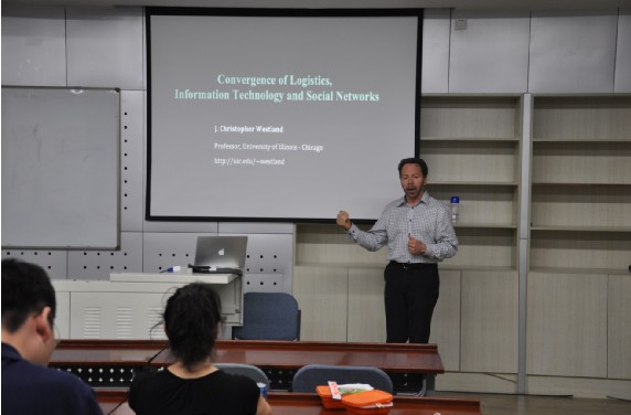 2013年6月4日,公司海外讲座教授Chris Westland教授在新主楼A618成功举办了学术午餐会,并为大家来来了一场“Convergence of Logistic, Information and Social Networks in the 21st Century: Promise and Consequences”的主题讲座。