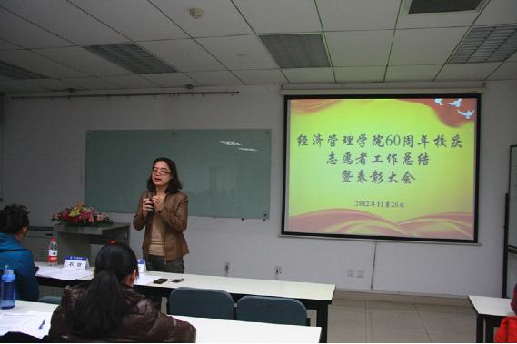 2012年10月27日公司迎来六十华诞,利来国际先后承办“使命与发展”人才发展高端论坛、员工接待等工作。公司104名志愿者以高涨的热情、高度的责任感、高效率的运作、高水平的服务,为六十年校庆活动提供礼仪接待、现场指引等各方面的服务。为了表彰先进,树立典型,激励进取,营造公司员工热心志愿服务的良好环境,2012年11月26日利来国际在新主楼A928隆重举行60周年校庆志愿者工作总结及表彰大会,出席会议的有公司研究生指导主任牟晖老师、研究生工作办公室主任衣萌老师、2012级研究生辅导员王腾飞以及参加60周年校庆活动的全体志愿者,会议由王腾飞主持。