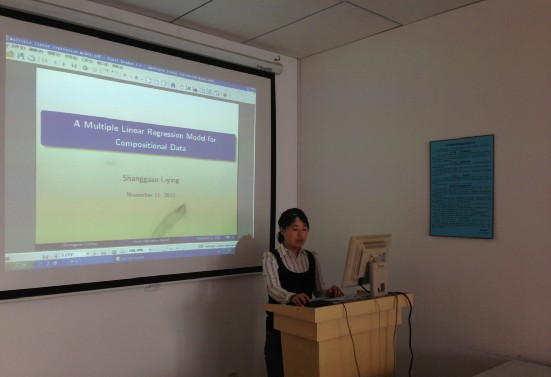 今天下午的第一位作者是上官丽英,她的论文主题是A multiple linear regression model for compositional data;第二位作者是陈梅玲,她的论文主题是MPCA of functional data based on constant numerical characteristics;第三位作者是苑桂萍,她的论文主题是图书馆的云计算应用_挑战与服务创新;第四位作者是王黔豫,她的论文主题是社交网络参与动机与参与强度的关系综述;第五位作者是赵汀,她的论文主题是基于SVM的机动车保险欺诈识别研究;第六位作者是李守荣,她的论文主题是基于社会网络理论的企业合作研发研究;第七位作者是马兰,她的论文主题是综合收益列报方式对决策行为的影响研究综述;第八位作者是秦炳山,她的论文主题是我国健康意外保险欺诈识别的实证研究。