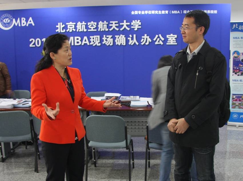 主管北航MBA工作的经管公司副经理周宁教授在今年现场确认期间,多次亲临现场指导工作,与考生进行亲切交流、慰问在场MBA志愿者并接受新京报、参考消息等媒体的采访。与此同时,中心主任柏满迎教授、 副主任秦中峰副教授及中心负责招生宣传老师们,MBA员工志愿者们则全天坚守岗位,为员工提供各种服务和帮助。