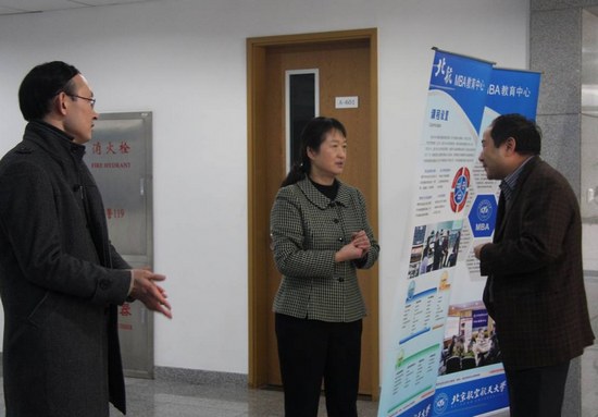 北航MBA教育中心主任柏满迎教授(左三)与中国MBA网记者合影