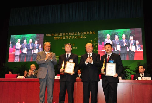 复旦管理学奖轮流在管理科学与工程、工商管理和公共管理三个学科奖励中国管理科学家,每年最多奖励三名。2012年共有两位学者获得杰出贡献奖,黄海军因其在动态交通分配模型、信息技术对交通行为的影响、拥挤道路使用收费、道路交通流模型等方面做出了系列性的创新贡献而获奖。中国科技大学的梁樑教授因其在组织效率优化的数据包络分析研究领域取得突破性成果而获奖。2012年还首次设立了管理学终身成就奖,被誉为中国质量管理之父的中国科公司数学与系统科学研究院87高龄的刘源张院士获此殊荣。