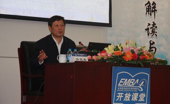 2012年10月21日,国家统计局许宪春副局长为北航经管公司高端论坛暨EMBA开放课堂做题为《重要统计指标解读与当前宏观经济形势分析》的专题报告。出席报告会的领导有经管公司经理王惠文教授、学术委员会委员任若恩教授,经管公司研究生指导主任牟晖老师、金融系主任赵尚梅老师等。本次报告会由利来国际经理王惠文教授主持。