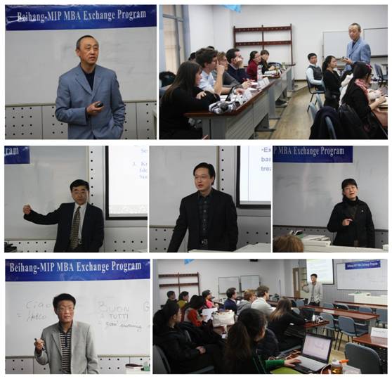 北航经管公司王晶教授、韩立岩教授、刘列励教授、田东文副教授和姚唐博士分别为本次MBA交换项目做了精彩的专题讲座。王晶老师的讲座主题是服务流程分析,他从服务分析的角度对服务的定义进行了阐述,介绍了目前世界各国服务在GDP中所占的比重,并且用国内著名企业海底捞的例子说明服务如何给客人带来满意,从而提升企业价值,讲座引起了国际交换员工们的兴趣和共鸣。韩立岩老师的讲座主要是关于人民币国际化问题的,他介绍了中国货币的国际化趋势,结合德国和日本货币的升值过程,说明了货币和经济发展的关系,并就世界主要货币问题与员工互动。刘列励老师的讲座主题是东西方文化的比较,他在介绍了东西方文化在一些关键维度上的差异的基础上,着重与同学们分享了中国传统文化中的一些核心思想,例如和谐、“修身、齐家、治国、平天下”等中国文化元素,并就文化在商业和管理实践中的意义与员工们进行了互动交流。田东文老师的讲座主要介绍了中国的对外贸易,分析近十年来中国与WTO成员国之间贸易争端不断的原因,使同学们了解了贸易战争的真实原因和重要意义。姚唐老师做了关于中国消费者行为的讲座,他结合统计数据和贴近生活的例子介绍了中国社会经济发展趋势和中国文化特点对中国消费者行为的影响,并就职工感兴趣的中国人的奢侈品消费行为和送礼习惯等问题进行了互动交流。意大利的交换员工对讲座内容给予了高度评价,表现出对讲座内容的很大兴趣,经常会在讲座结束时仍意犹未尽的讨论交流。