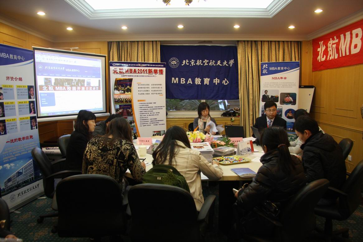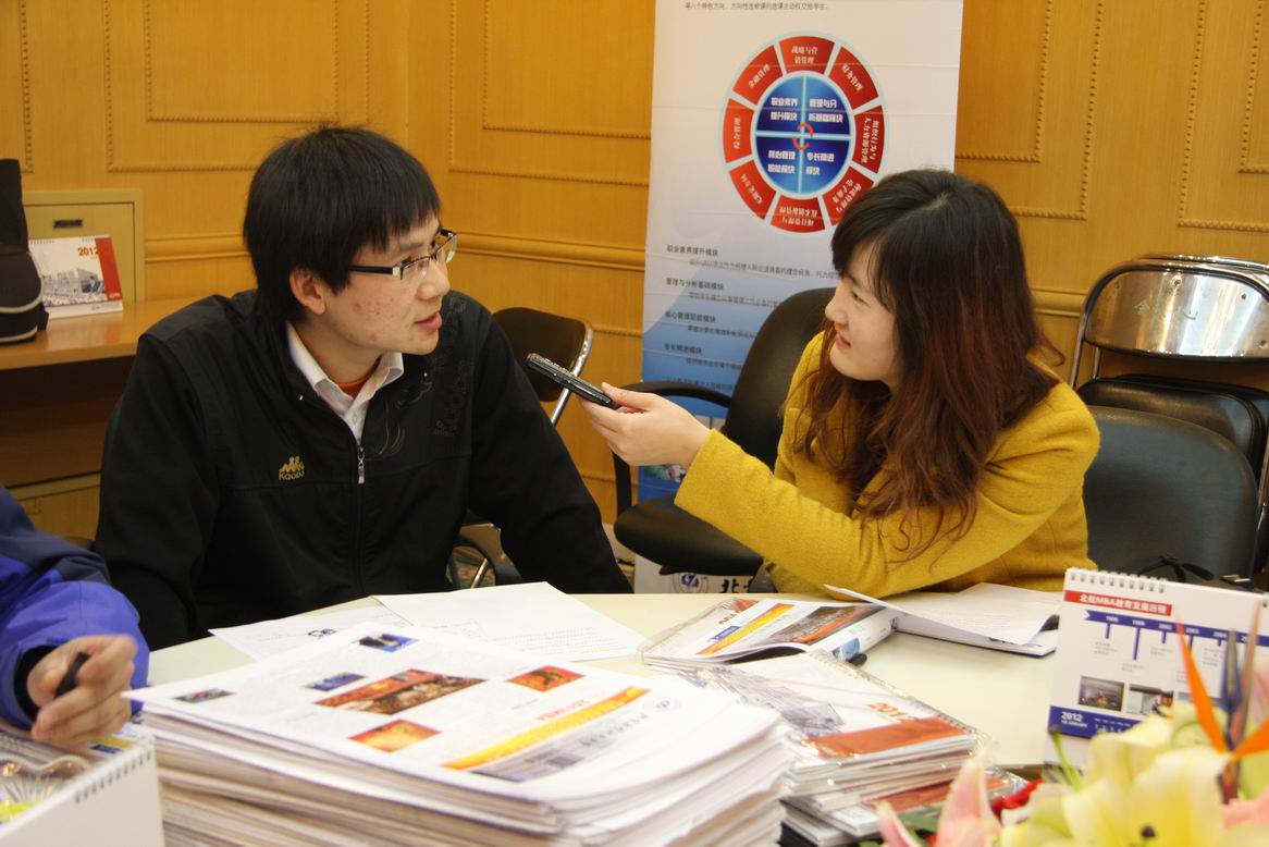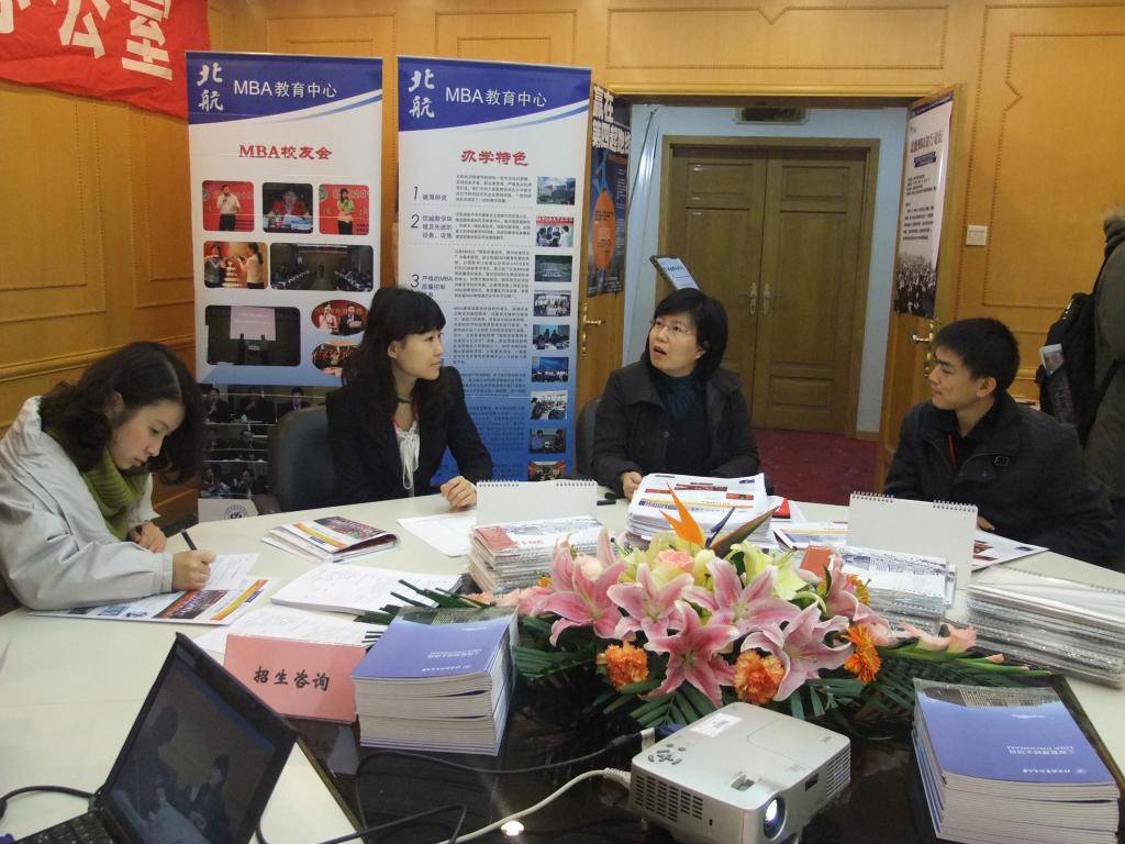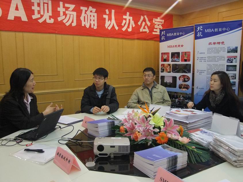 作为全国MBA综合改革试点院校的北航经管公司,为全面做好2012年MBA现场确认工作,基于专业化管理、人性化服务的理念,在总结前两年成功设立“北航MBA现场确认办公室”的成功经验基础上,北航MBA教育中心继续在研究生报考确认现场期间推出一系列人性化服务举措。11月初MBA教育中心在深入调研的基础上完成了现场确认期间的工作安排:10日至14日,中心主任苏文平副教授、副主任武欣副教授、副主任柏满迎教授及中心负责招生宣传老师们悉数在现场确认办公室办公,每天还有2—4名MBA学员到现场担当志愿者,共同为考生提供北航MBA招生政策咨询、2012MBA提前面试报名、2012SMBA报名、宣传礼品派发、员工交流、休息休整等温馨服务,并推出了“赢在第四起跑线”—MBA职业生涯规划读书会、北航MBA知行论坛等系列活动。
