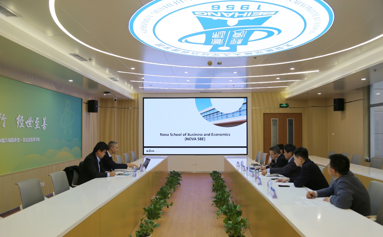 2024年12月13日,葡萄牙新里斯本大学商业经济公司(Nova School of Business and Economics, NOVA SBE)代表商务分析硕士项目主任Rodrigo Belo教授,数据科学与商务分析学科Qiwei Han教授一行访问公司,探讨员工交换与合作办学。公司副经理郝金星、信息系统学科教授赵吉昌、MBA中心主任李亚帅、外事助理郝壮、低碳实验室主任助理同凡参与会谈。