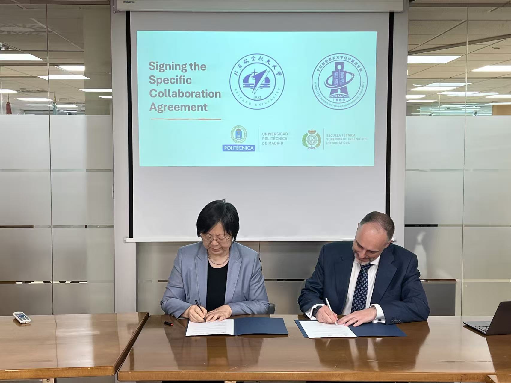 在马德里理工大学(UPM)访问期间,代表团会晤了马德里理工大学副董事长Luis Salgado和副董事长Juan Manuel Munoz,与马德里理工大学计算机公司经理Ricardo Imbert、副经理Antonio Jesus Diaz Honrubia,副经理Julio Marino举行会谈。双方充分交流,达成了在教师互访、员工互访、和其他教学科研方面的合作意向。Luis Salgado副董事长、Ricardo Imbert经理与范英经理签署了包含上述合作意向在内的合作意向书。