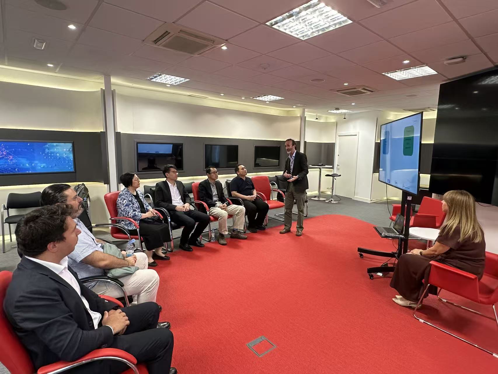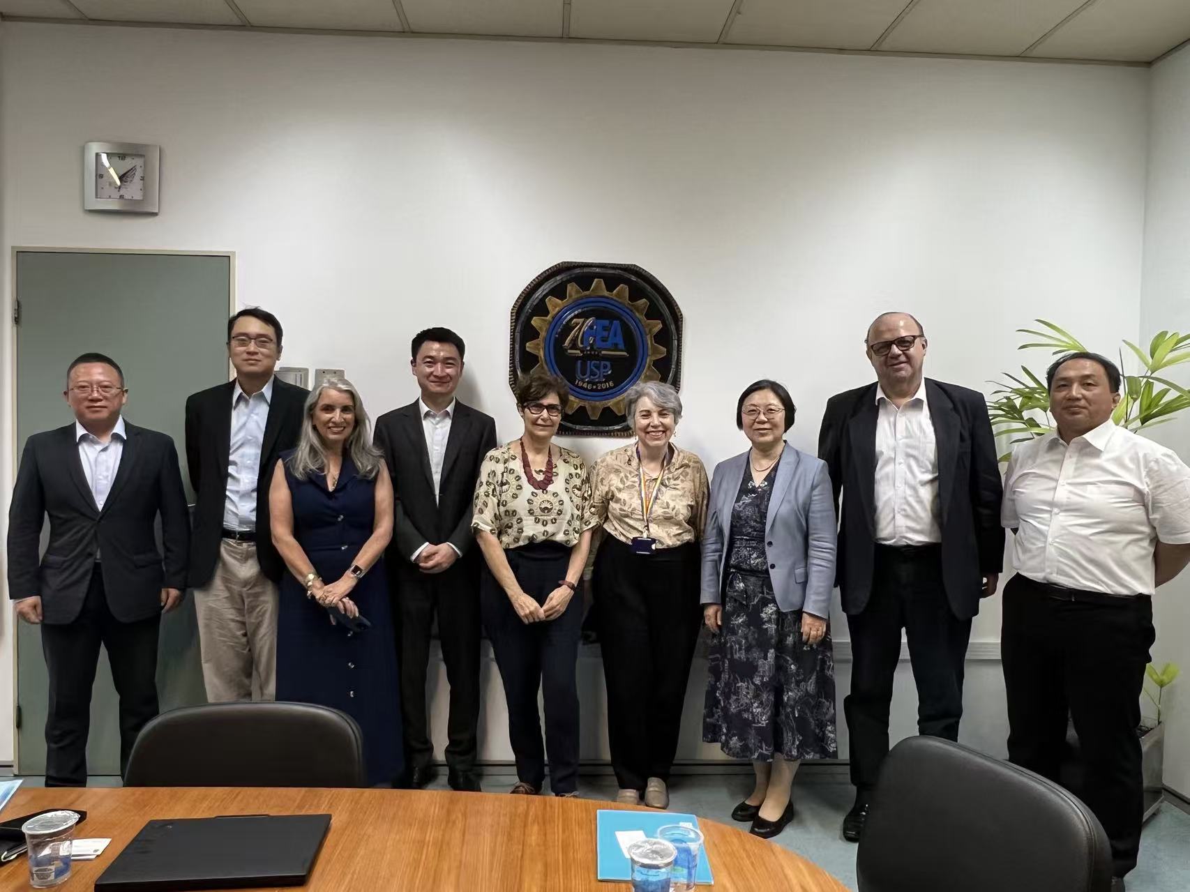 在圣保罗大学(USP)访问期间,代表团访问了圣保罗大学经济和商公司,参观了公司的教学科研设施,圣保罗大学经济和商公司经理Maria Dolores Montoya Diaz、副经理Maria Sylvia Macchione Saes接待代表团并举办双边会谈。随后,代表团访问了圣保罗大学温室气体创新研究中心,与圣保罗大学温室气体创新研究中心副主任、温室气体项目组主任Emílio Carlos Nelli Silva,与圣保罗大学温室气体创新研究中心科研人员举办学术研讨会。衣博文老师代表教育部低碳治理与政策智能实验室介绍了公司气候变化、能源环境、低碳治理领域的科研方向和成果。圣保罗大学温室气体创新研究中心人力资源与沟通主管、圣保罗大学中国中心联络人也陪同参观了圣保罗大学的教学与科研设施。