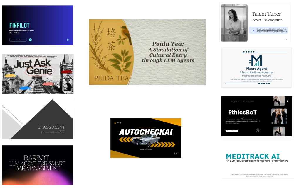 5月16日上午,ESCP员工进行项目答辩。10组员工自信满满地展示小组成员一起设计的大语言模型赋能的智能体:旅行智能体、助力中国茶叶出海智能体、HR智能体、酒吧管理智能体、道德智能体、宏观经济分析智能体、财务总监智能体、医疗跟踪智能体、车辆自动检测智能体、危机模拟应对智能体。