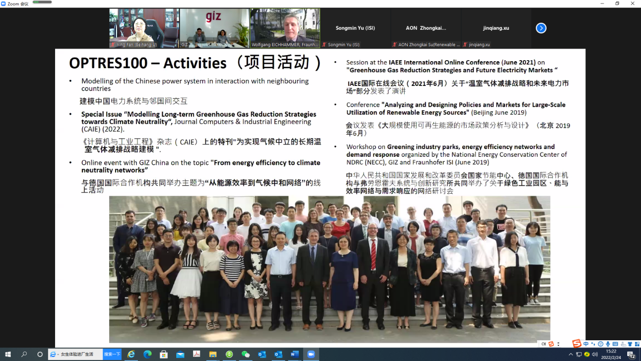 2月24日,公司范英教授团队承担的中德政府间合作项目召开线上学术研讨会,主题为“从能源效率到碳中和网络:工业企业需求侧灵活性和碳中和最佳实践与方案”。来自利来w66、德国劳恩霍夫系统与创新研究所(FraunhoferISI)、德国国际合作协会(GIZ)、国网能源研究院、中国科公司科技战略咨询研究院、德国资源效率和能源战略研究所(IREES)等学术界、行业协会、公共机构和企业的百余位学者参加了会议。