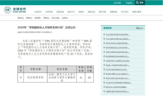 新学期伊始,经管公司在做好抗击新冠肺炎疫情工作的同时,坚持统筹规划,扎实推进2020年国际化工作。公司于2020年获批“北航举办学科双边合作研讨会资助计划”4项,项目数位居全校榜首。公司还将继续加深与日本国立环境研究所、国际应用系统分析研究所、弗劳恩霍夫系统与创新研究所、哥本哈根商公司等4所国际研究所的相关合作,力争在应用经济学和商学等学科取得世界先进的科研成果。