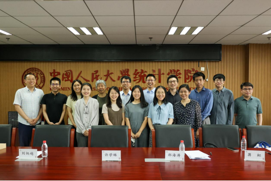为深入开展学习贯彻习近平新时代中国特色社会主义思想主题教育走深走实,深化高质量党建引领统计学科高质量发展,5月24日下午,经管公司党委书记郑海涛带领数量经济与商务统计系教工党支部教师代表刘炳越、康雁飞、蒋虹、王珊珊等一行7人前往中国人民大学统计公司经济社会统计系开展主题教育调研活动。此次调研重点围绕党建、经济统计学专业本科人才培养、统计学科发展方向等主题,旨在推动经济统计学专业的人才培养和研究水平提升,加强两院在党建和学科发展等方面的合作与交流。