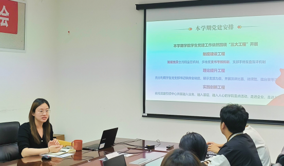 会上,陶雨芊对本学期公司员工党建工作进行工作部署。公司结合党建工作开展中的工作实际,提出“三大工程”的全新模式,着力解决党支部建设难点和实践创新难点,推动支部党建工作守正创新。依托制度建设工程,继续建立和完善发展党员全流程监管机制、多维度支书考核机制、支部手册互查互评机制;依托理论提升工程,充分利用员工党支部书记联席会制度,继续开展演讲比赛、微课题、擂台赛等活动,进一步展示支部的力量;依托实践创新工程,通过党建引领中心开展融入业务、融入基层、融入人心的公司重点活动,深入开展企业走访调研,深化服务助力乡村振兴。此外,陶雨芊就近期将开展支部手册互查互评和发展党员等重点工作做出提醒。