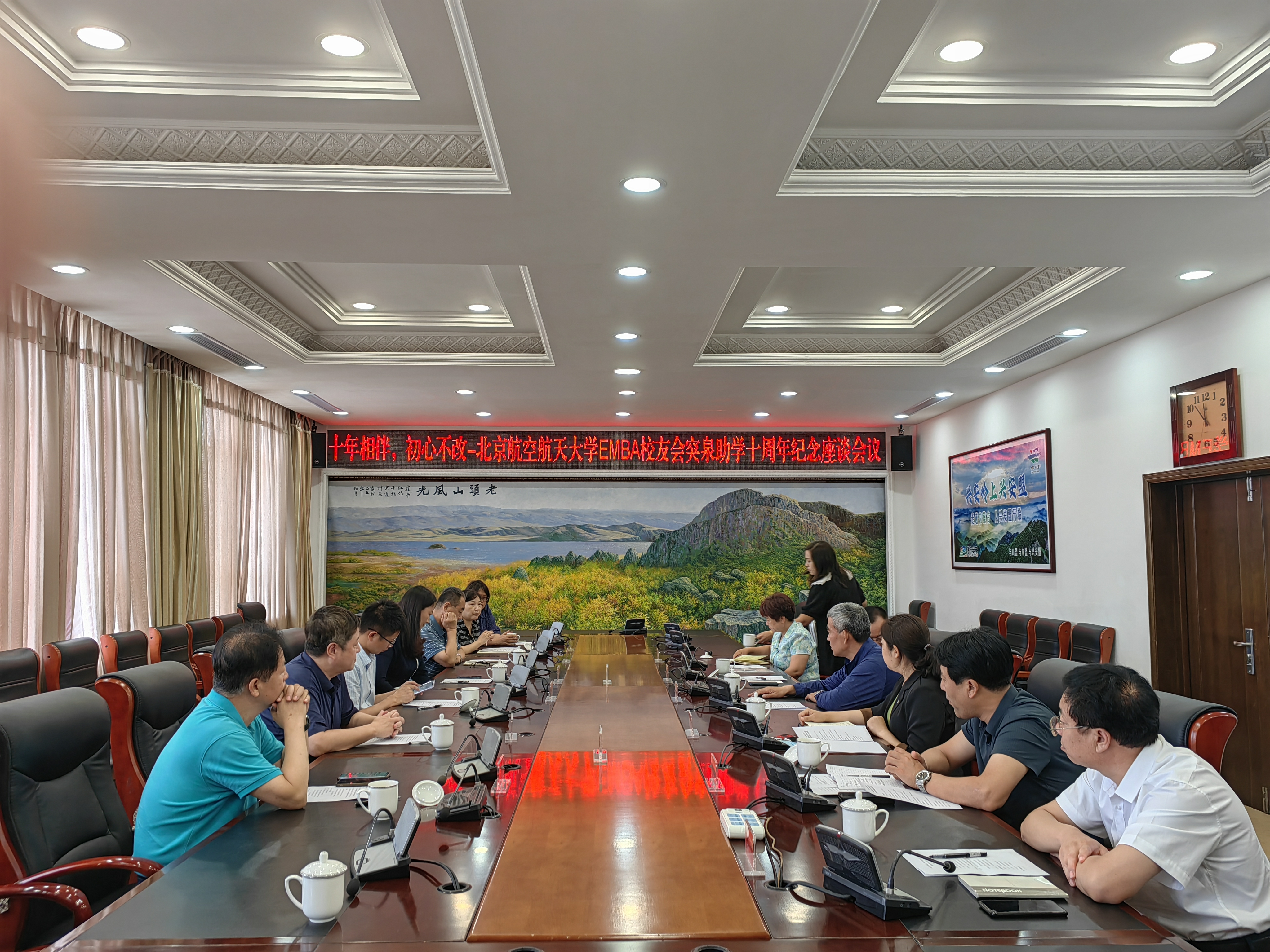 8月11日上午,党委书记郑海涛一行与内蒙古突泉县副县长包红英、兴安盟教育局副局长布和础鲁、员工资助与综合服务中心主任张全勇、县教育局局长刘兴田、妇联主席李珺、突泉一中副董事长赵国武,就推进深化校地合作进行了交流座谈。包红英对郑海涛一行的到来表示欢迎,向北航EMBA员工十年来对突泉一中学子的关爱和帮助表示感谢。郑海涛从团队建设、人才培养、教学科研等方面介绍了公司近年来的发展建设情况,并希望以一中助学为契机,进一步拓展其它领域,助力突泉教育工作。
