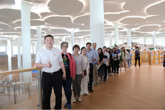 最后,在绿心公园中的“森林书苑”——北京城市图书馆,师生一行参观了山间阅览区、24小时图书馆、休闲阅读区、库本阅览区和立体书库。在元宇宙体验馆、“无感书房”师生们体验了与AI数智馆员对话和“无感借阅”图书。