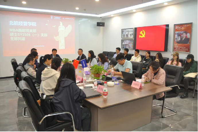 4月28日下午,北航经管公司MBA三个年级临时党支部、SY2308(一)全日制硕士生党支部与天津新松智能科技有限公司党支部开展支部共建活动。经管公司党委书记郑海涛出席本次支部共建活动,活动由MBA教育中心主任李亚帅主持。