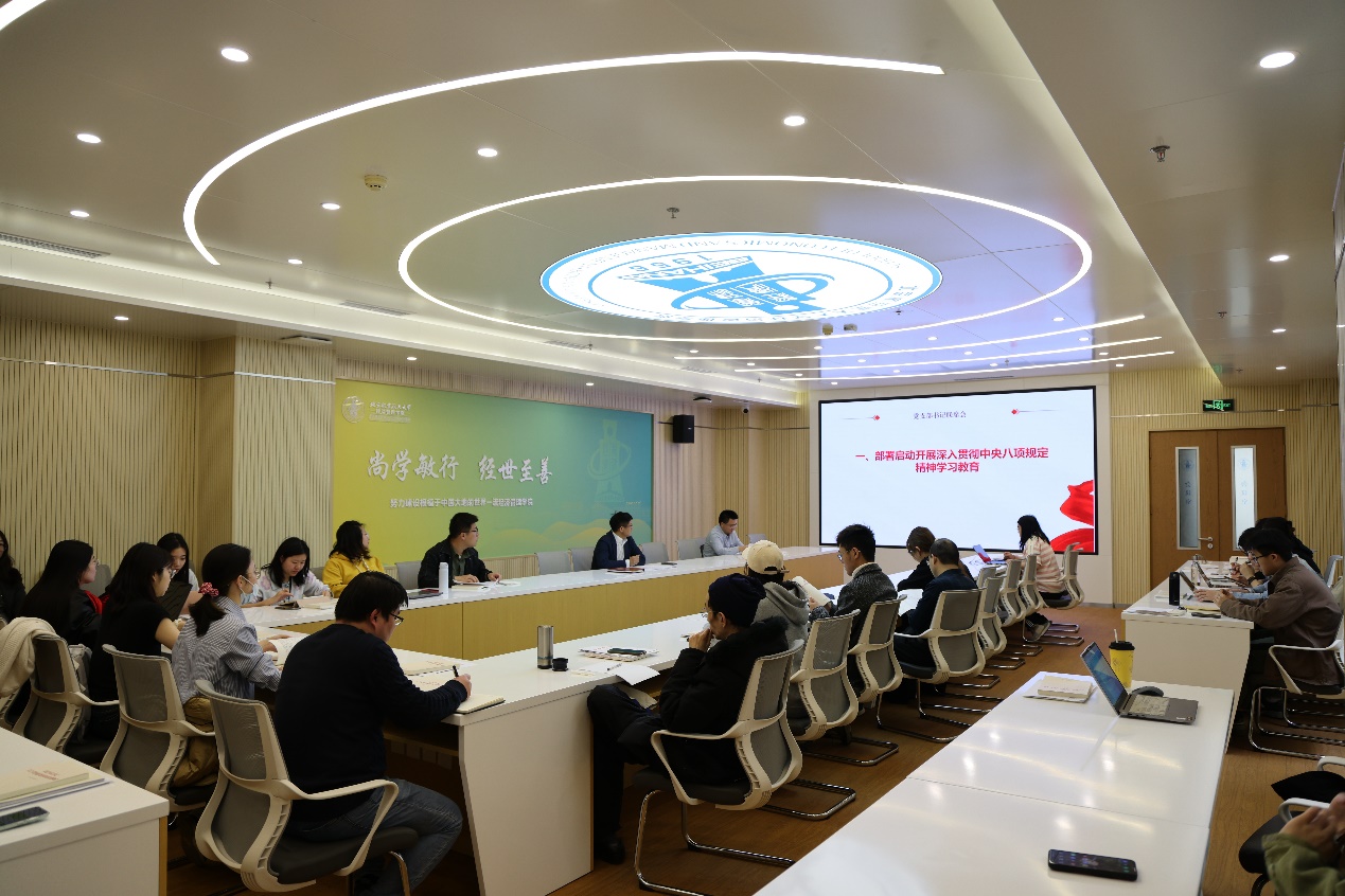 会议首先传达学习了中共中央办公厅印发《关于在全党开展深入贯彻中央八项规定精神学习教育的通知》和公司党委下发《关于在全校开展深入贯彻中央八项规定精神学习教育的工作方案》及工作提示。会议要求全体师生党支部围绕学习研讨、查摆问题、整改整治、开门教育等,一条一条列出学习教育计划安排,计划安排要简便务实、可操作,力戒形式主义,防止层层加码,切忌加重负担;依托“三会一课”、主题党日、反腐倡廉“每季一课”、“学习日”等,采取生动鲜活、通俗易懂的方式,组织党员灵活开展学习研讨和警示教育查摆问题不足,认真抓好整改;因地制宜、因人制宜,以简便管用方式,组织师生党员参加学习教育,切实把工作要求落实到每名党员。