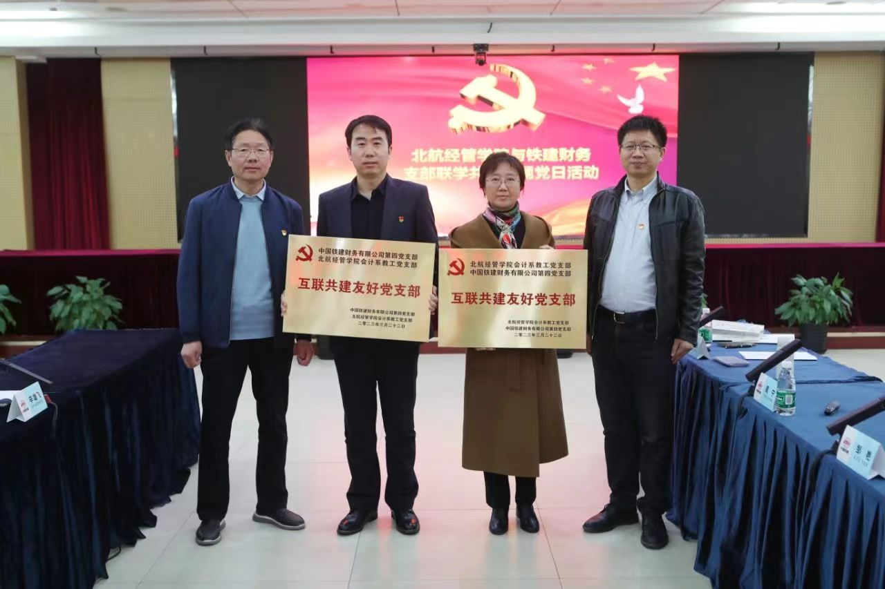 本次活动由会计系教工支部书记谢岚、中铁建财务公司第四支部书记薛志辉联合主持,以上四个党支部的党员代表、入党积极分子、群众代表共26人参加,经济管理公司党委书记郑海涛、副书记高超、中铁建财务公司纪委书记彭长林、党群工作部部长苗淼、中铁建财资管理(香港)有限公司常务副总经理辛雄飞等出席活动。