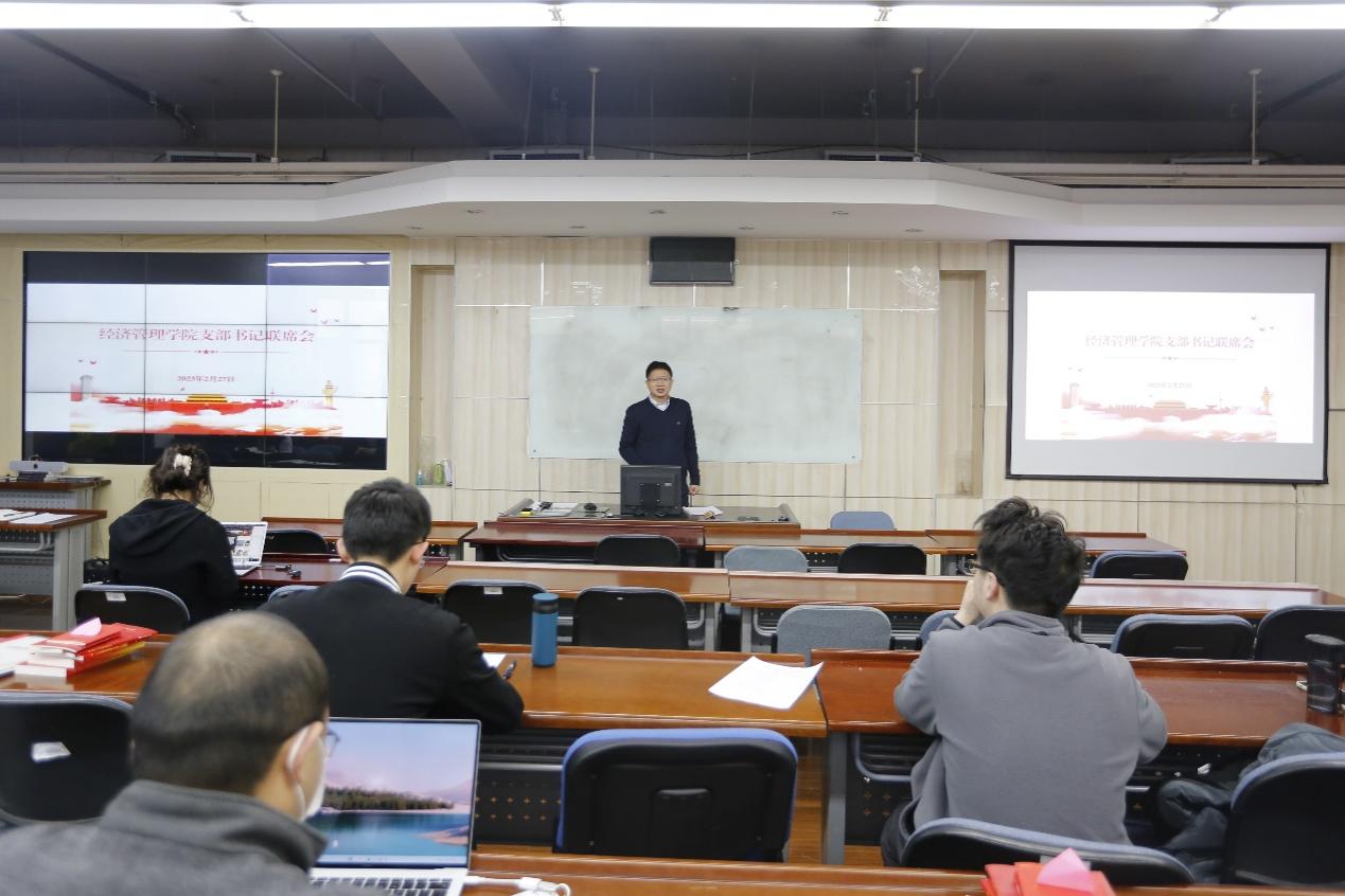 2023年2月27日上午10时,经济管理公司党委在新主楼A622教室召开支部书记联席会,传达公司和公司2023年度工作会议精神,部署年度重点工作。公司党委书记郑海涛主持会议,公司党委副书记高超、师生支部书记、员工工作负责人和专职组织员40余人参加会议。