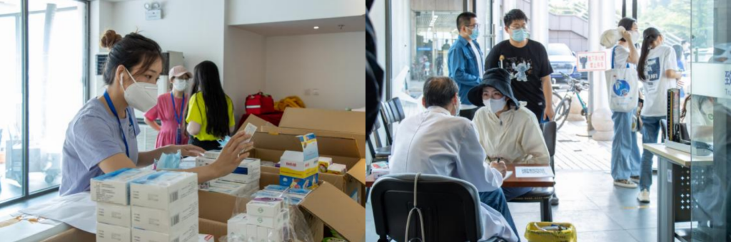 疫情期间,为便利师生就医、降低流动风险,公司路、沙河两校区都设置校内医疗点。2022年5月17日,经济管理公司党员先锋队1小队队员们,第一时间响应公司需要,主动要求投身到医疗点志愿工作,协助医生完成登记、发药,每天接待200余位员工和老师,解决了师生就医的问题。