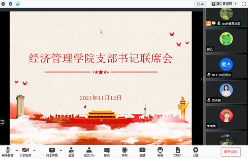 2021年11月12日下午,经济管理公司党委召开支部书记联席会视频会议,传达公司党委书记联席会精神,公司党委书记刘志新主持会议,师生支部书记、员工工作负责人和专职组织员近40人参加会议。