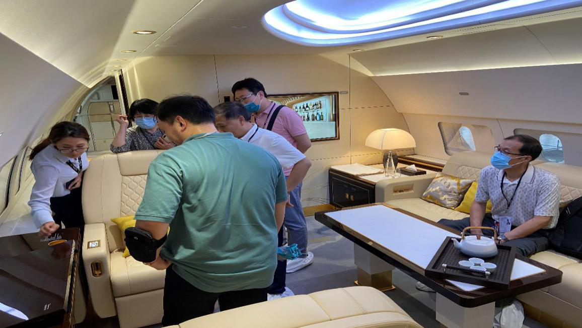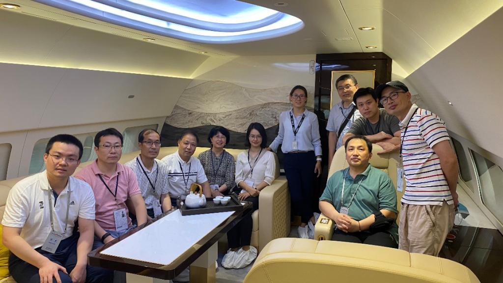 公司师生首先参观了Ameco公司的四机位机库和A319 Mockup飞机内舱,Ameco客舱产品事业部李真和飞机排班计划部程晔磊两位工程师全程陪同并解说。Ameco公司成立于1989年,由中国国际航空股份有限公司和德国汉莎航空公司合资经营,是我国民航合资最早、规模最大的民用飞机综合维修企业。Ameco公司每年重型维修近200架次飞机,每天检修飞机近1600架次,有多年的专机公务机改装及客改货改装经验,是我国首家获得设计大改权利的EASA设计机构,也是我国首家EASA147认证培训中心。通过聆听讲解和现场观摩,公司师生了解了Ameco公司四机位机库的建成历史以及客舱改装服务,深刻感受到了我国民航飞机维修及改装中的科技魅力。四机位机库在保障Ameco公司成长的同时,也是我国民航业发展的有力见证。