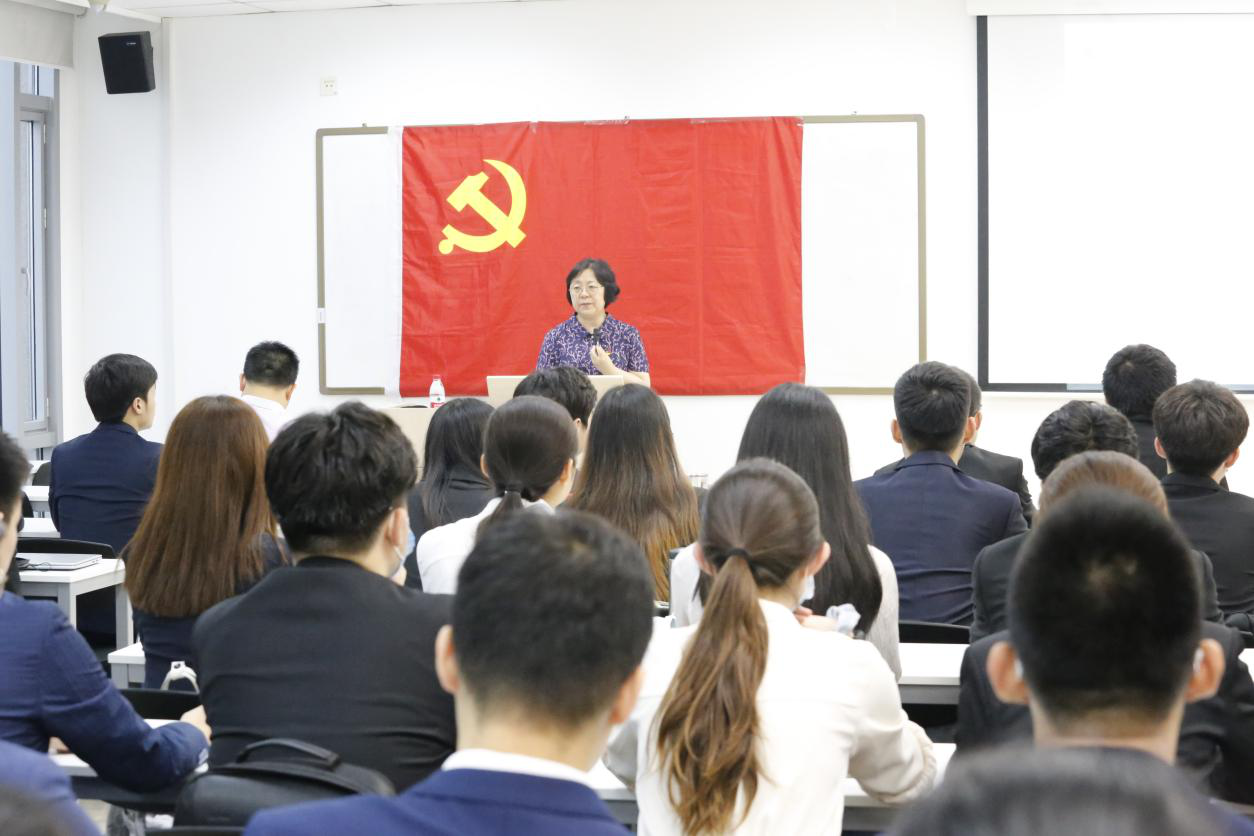 2021年6月9日下午,利来国际经理范英教授在新主楼A706教室讲授党史学习教育专题党课,2021年新发展的60余名员工党员参与学习。