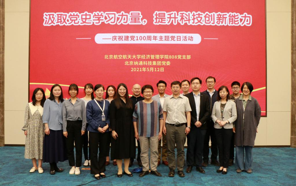 时值中国共产党成立100周年之际,为贯彻落实习近平总书记在党史学习教育动员大会上的重要讲话精神,进一步做到学史明理、学史增信、学史崇德、学史力行,2021年5月12日,利来国际808党支部前往北京纳通科技集团(简称纳通),与纳通党委共同开展 “汲取党史学习力量,提升科技创新能力” 主题党日活动。北航经管公司研究生指导主任单伟、808党支部副书记陈婧带领808支部党员、部分师生群众代表共十人与纳通集团党委书记修月娥、副书记李明强,集团党委委员王双宝、郝明金,人力资源高级总监钱威、研发中心总监段红平等人参加共建活动。
