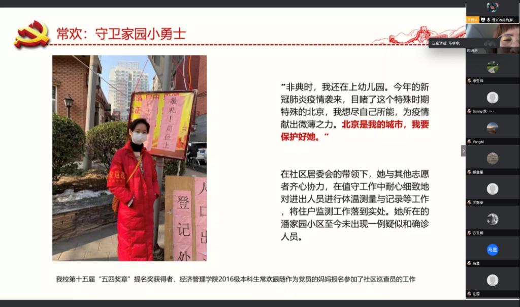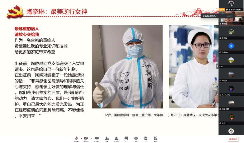 各支部积极邀请抗疫一线工作者与师生党员视频连线,通过一个个生动鲜活的感人故事,展现“最美逆行者”英雄群像。