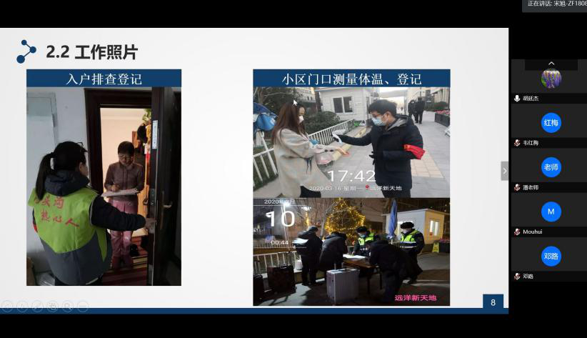 公司青年教师党员王珊珊介绍了在线授课的经验和体会。她谈到,坚守教书育人初心,潜心做好线上教学是教师对疫情防控应有的责任。随着国内疫情的缓解和教师对学习心理疏导的加强,课堂交互效果明显改善,她也希望能够藉由在线教学积累探索更多讲授方法,提升教学工作质量。