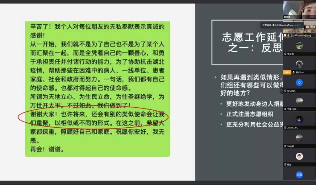 公司青年教师党员童小平在家乡黄冈市以“滚雪球”形式先后召集20余名志愿者组建“平平归来”志愿组,积极协调捐赠物资,及时准确地对接到需要的医院及相关部门。