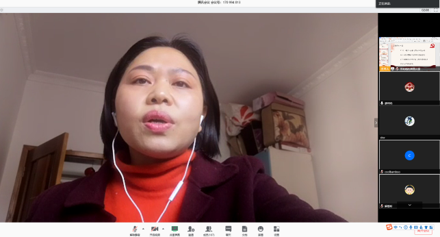 机关党支部书记的韩小汀老师对整个分享环节做了总结发言,她表达了对上述分享人的感谢,不论是参与出国交换还是参与科研,都展现了本科员工的优秀。而且国人的命运和国家的命运是紧密相连的,我们在外国眼里是什么姿态,主要取决于我们祖国的姿态。同时也表达了对曾阿姨作为一线工作者的敬佩和感谢,正是他们的付出,使得我们能以最快的速度控制住疫情,保障国民的生命健康。