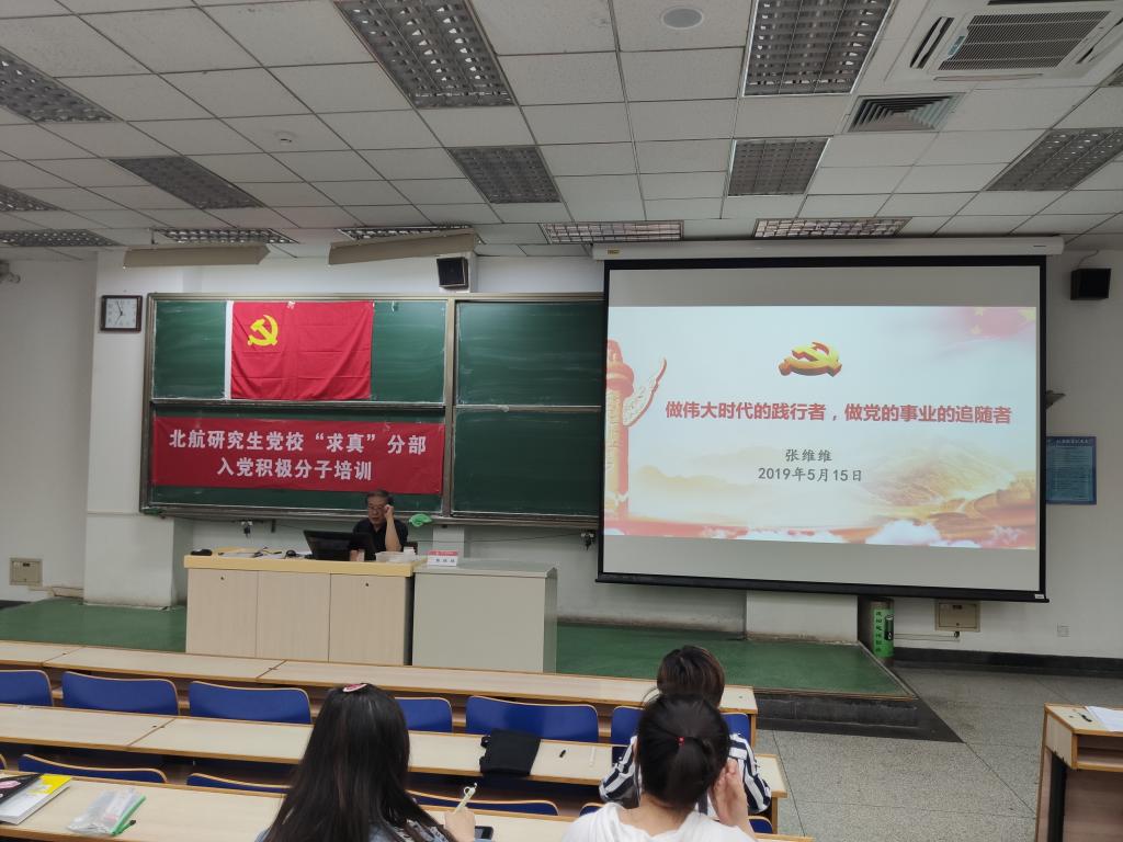 2019年5月15日晚,经管公司承办的北航研究生党校“求真”分部举行第七期入党积极分子培训开班仪式暨第一次党课培训。来自25个不同公司的184名入党积极分子参加了本次党课学习。本次党课邀请到原北航党委常务副书记张维维教授为积极分子讲授“做伟大时代的践行者,做党的事业的追随者”主题党课。开班仪式由北航经管公司研究生指导主任单伟副教授主持。