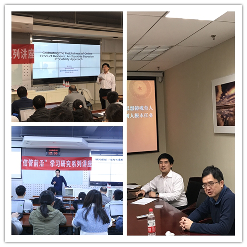 为发挥党在团队建设和学科发展中的引领作用,公司802支部联合清华大学管理科学与工程系教工党支部,中国人民大学管理科学系教工党支部,对外经济贸易大学电子商务系教工党支部联合开展新时代“信管前沿”学习研究系列活动。该活动得到公司分党委、经济与商学研究院以及802系全体教师的大力支持。每次学习研究活动分为学习部分和研究部分。学习部分邀请兄弟院公司党支部重要成员介绍党建经验,共同开展两学一做;研究部分则邀请优秀党员学者分享信息管理与信息系统学科前沿研究进展。