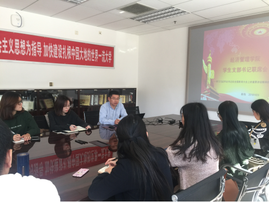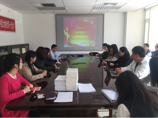 2018年10月23日在新主楼A710召开了经管公司员工党支部书记联席会,主要对“全国教育大会”的内容进行学习。会议由研究生指导主任单伟副教授主持,本科工作办辅导员白雪老师、研究生工作办辅导员张慧美老师及全体员工党支书全程参加本次会议。