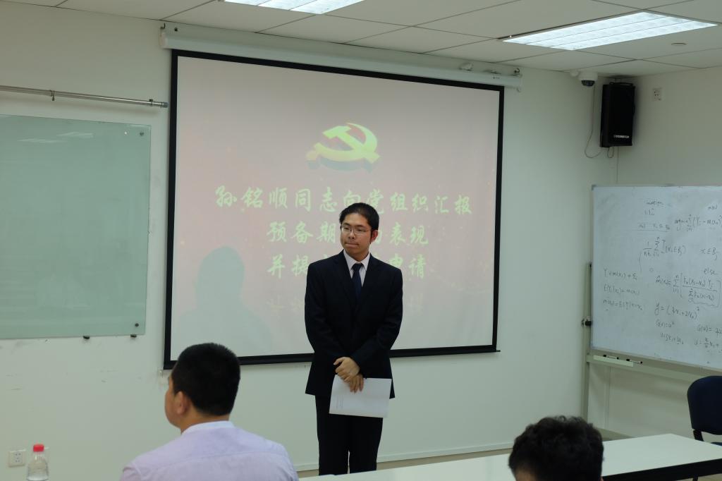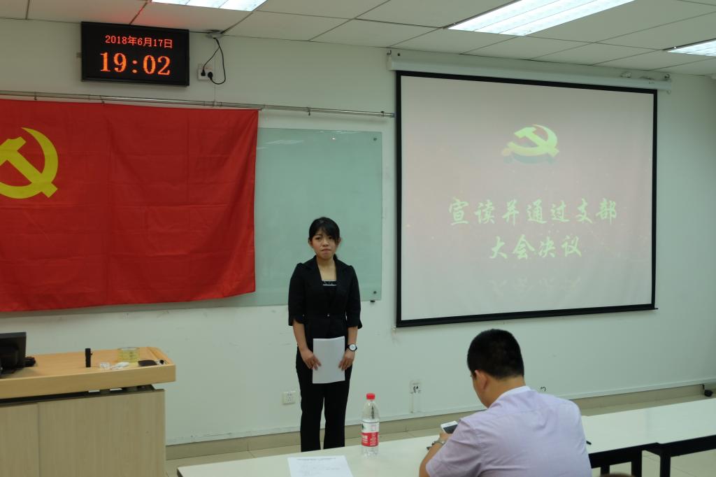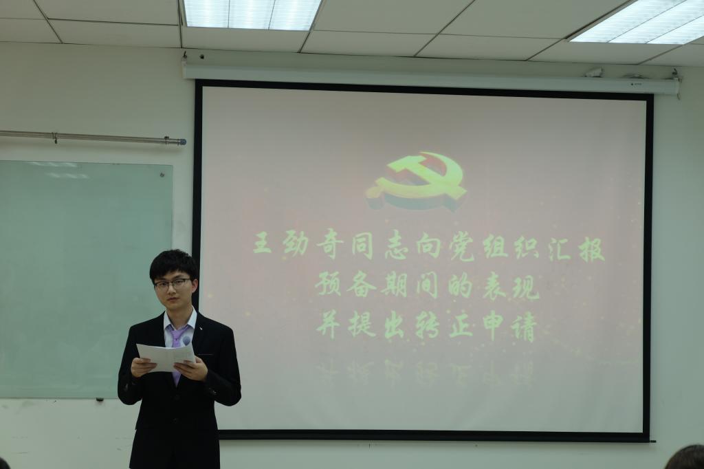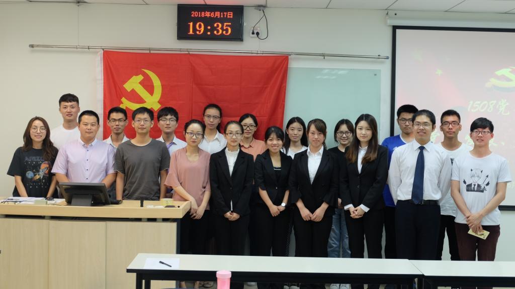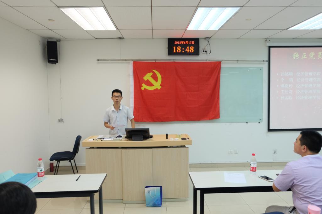 2018年6月17日晚,本科大三支部在新主楼A949召开了预备党员转正大会,会议议题为讨论预备党员孙铭顺、李璐、谭晓玲、王劲奇、孙孟晗5位同志是否按期转为正式党员的问题。会议由1508第二党支部书记朱文鹏主持,公司副经理张人千教授、公司专职辅导员朱鹏宇老师以及支部全体党员参加了此次会议。