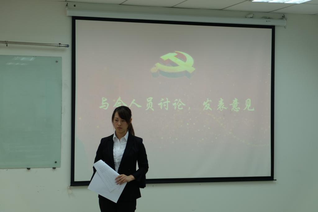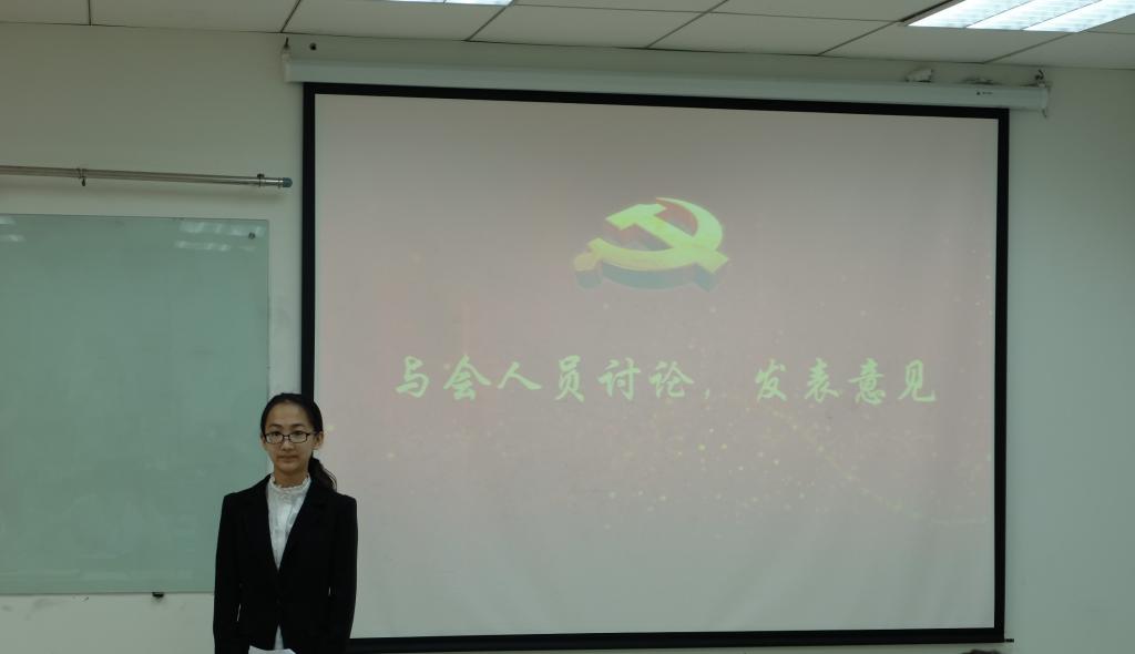 奏唱《国际歌》后,朱文鹏同志对会议出席人数进行了说明,确保会议有效。正式党员马倩茹担任监票人,正式党员丁宁担任计票人。支部依次讨论这五位同志的转正申请。预备党员孙铭顺、李璐、谭晓玲、王劲奇、孙孟晗依次宣读了自己的转正申请书,向党组织汇报了一年预备期以来的学习和工作基本情况,并表达了希望转为正式党员的希冀。